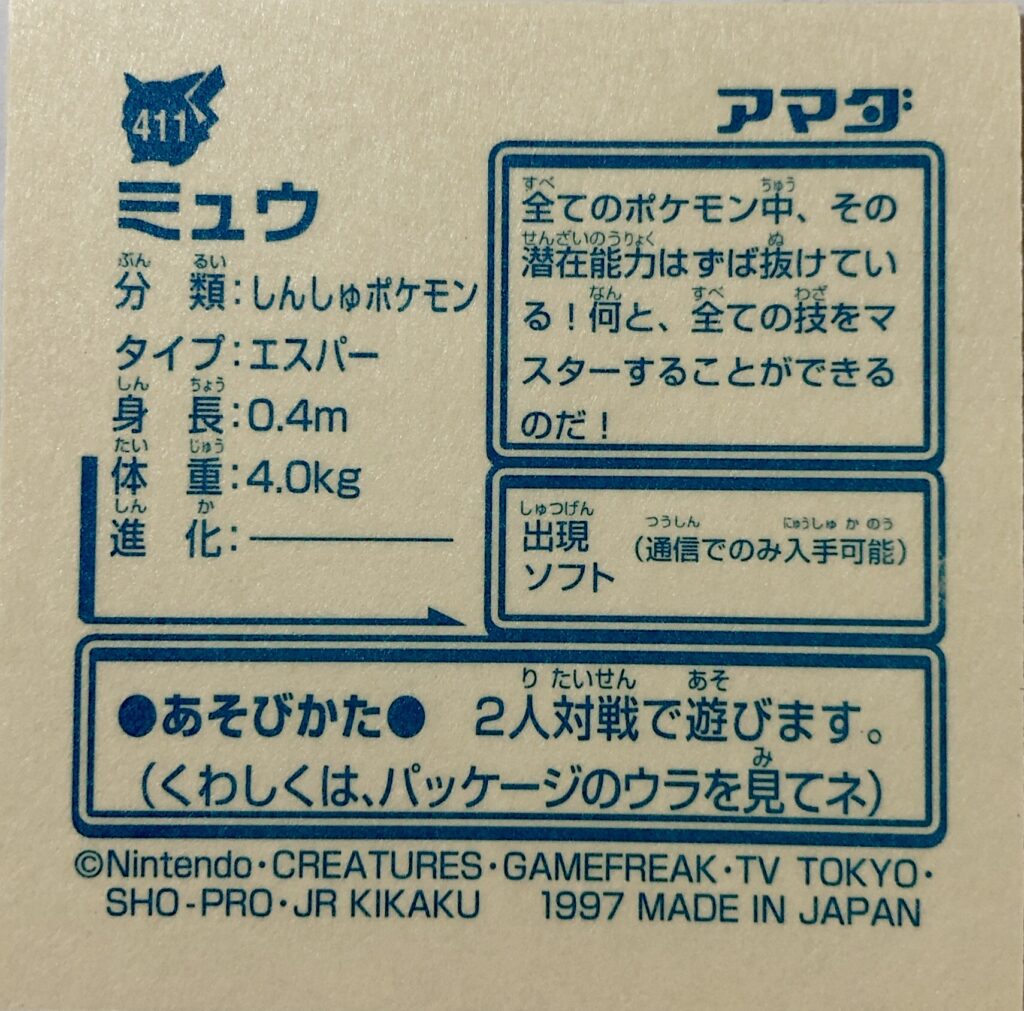 | シール名 | ミュウ |